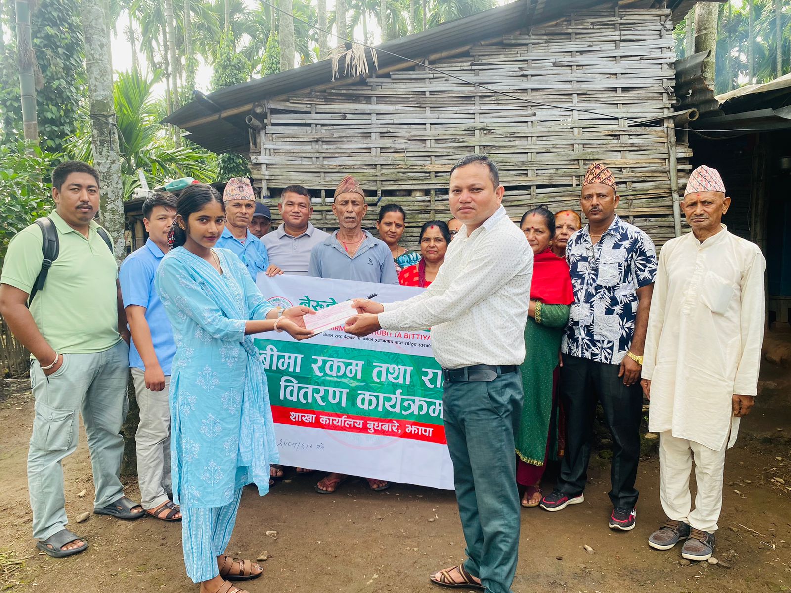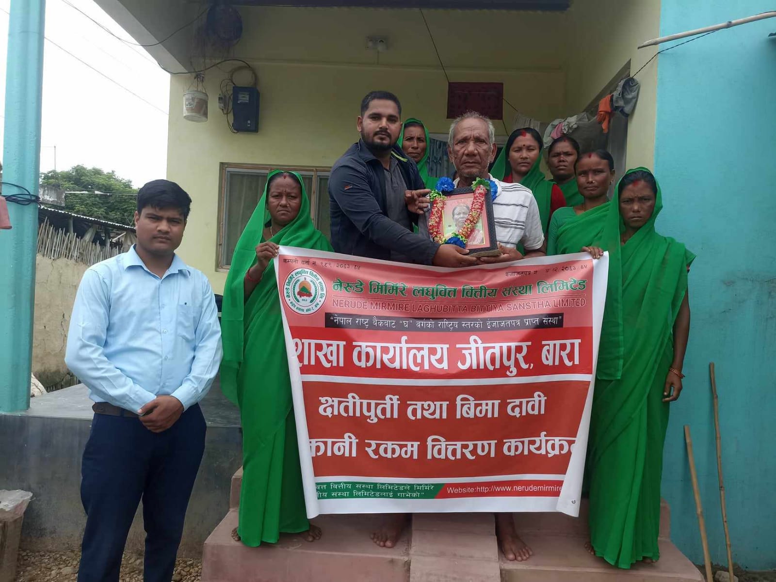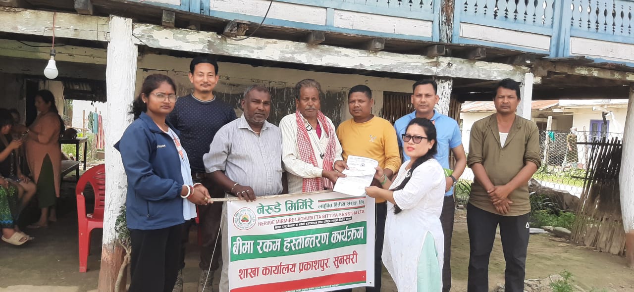 नेरुडे मिर्मिरे लघुबित्त बित्तिय संस्था लिमिटेड शाखा कार्यालय प्रकाशपुर, सुनसरीबाट सदस्यको मृत्यू बिमा दाबी रकम भुक्तान...
